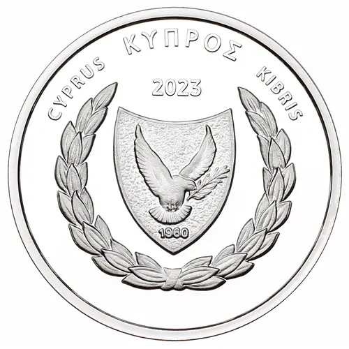 Reverse description This coin depicts Cyprus as a power of creation and development within the European environment symbolised by the European Union flag. Doves symbolising peace are also depicted.