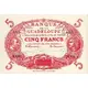 | Vorderseitenlegende | BANQUE DE LA GUADELOUPE Il sera payé en espèce, à vue, au porteur CINQ FRANCS ( par groupe de cinq billets. ) Le Directeur Le Caissier JH-CABASSON . INV ET DEL 1874 J. ROBERT SC. (Translation: Bank of Guadeloupe It will be paid in cash, on sight, to bearer Five Francs (per group of five tickets.) The Manager The Cashier) |
