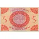 | Reverse description | Red. Guillochages in the corners on a security background in pink orange gradient and in an oval the article 139 of the Penal code framed by the value `5` repeated on the left and on the right. |