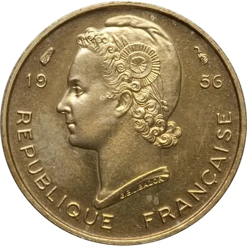 | Legenda awersu | 19 56 REPUBLIQUE FRANÇAISE G.B.L. BAZOR (Translation: French Republic) |