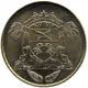 | Popis rubu | Five in large numbers inside a circle, palm tree on the left and penguin on the right. Date. Value. |