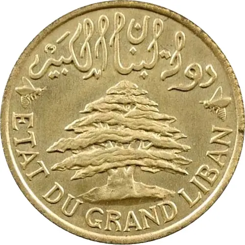 | Obverse lettering | دولة لبنان الكَبير ETAT DU GRAND LIBAN (Translation: State of Greater Lebanon) |