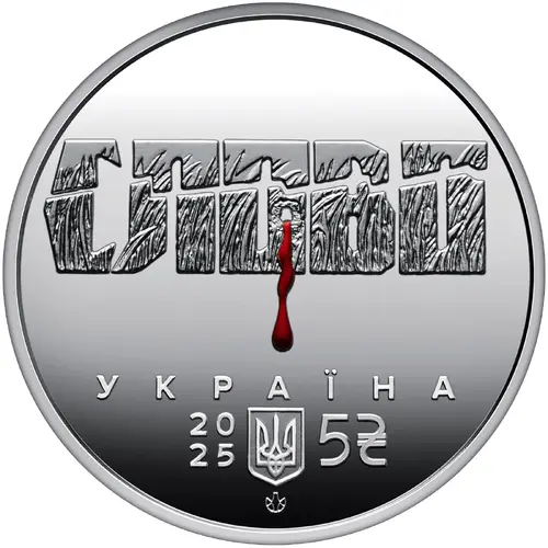 Obverse description Stylized legend СЛОВО (meaning “word” in Ukrainian), the name of the Kharkiv House of Writers of the 1930s. The texture of the letters shows a sprout of winter wheat, an image of the younger generation of artists whose lives and work were cynically destroyed by the totalitarian government. The tragedy of the historical era is emphasized by the shot through the letter “O”, which is bleeding, reminding us of a painful wound in the history of Ukraine and the unfulfilled dreams of talented artists.