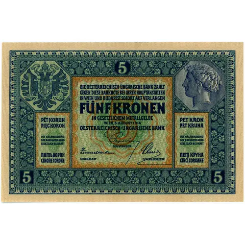 | Obverse lettering | 5 FÜNF KRONEN OESTERREICHISCH-UNGARISCHE BANK |
