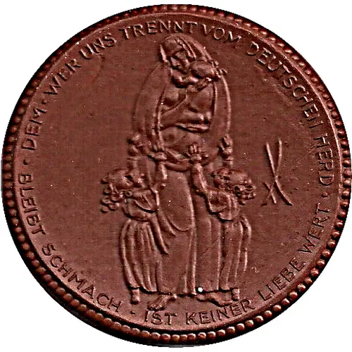 | Legenda do anverso | DEM * WER UNS TRENNT VOM DEUTSCHEN HERD * BLEIBT SCHMACH * IST KEINER LIEBE WERT |