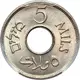 | توضیحات روی سکه | Central hole, encircled by a stylised olive wreath surrounded by Palestine in Hebrew, English and Arabic with date in English and Arabic below |
