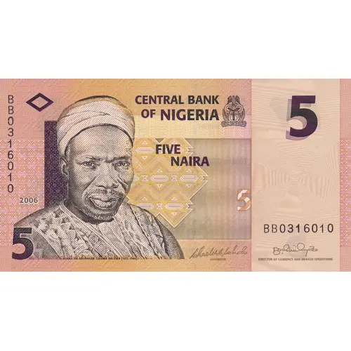 | Legenda do anverso | Central Bank of Nigeria Five Naira |