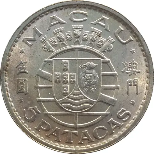 | Obverse lettering | MACAU 5 PATACAS |