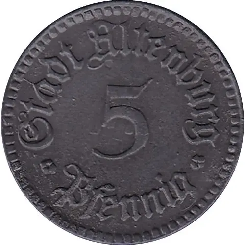 | 表面の銘文 | Stadt Altenburg 5 ✤ Pfennig ✤ |