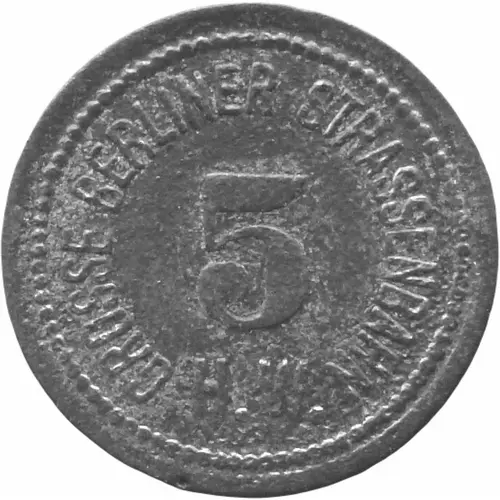 | Надписи аверса | GROSSE BERLINER STRASSENBAHN 5 H.W. |