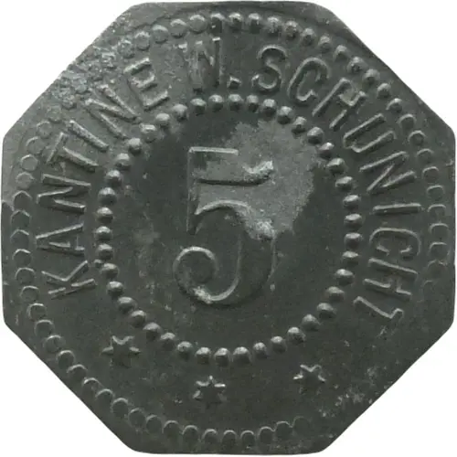 | Legenda del rovescio | KLEINGELDERSATZMARKE 5 * * * |