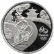 Scene depicting the practice of cycling in the Tijuca Forest, with the Chinese Pavilion in the background. Complete the composition the Rio 2016 Games logo and the caption `Brasil`. |