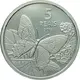 The reverse highlights the beach-butterfly, with in the background in composition with the face value (five reais) and the era (2016). |