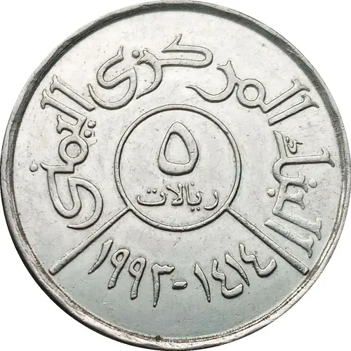 | نوشتههای روی سکه | البنك المركزي اليمني ٥ ريالات ١٤٢٠ - ٢٠٠٠ (Translation: Central Bank of Yemen 5 Riyals 2000 - 1420) |