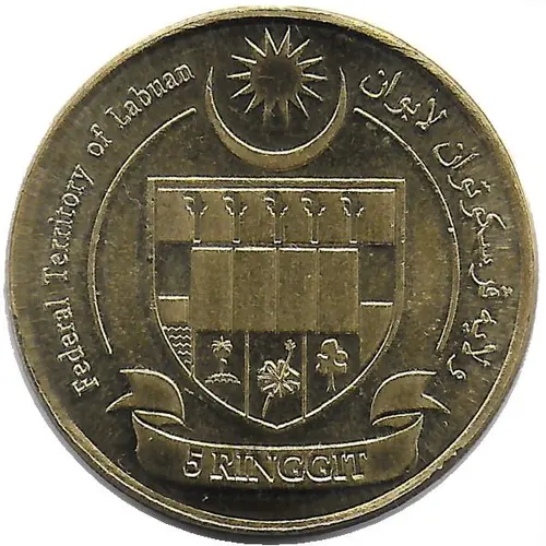 | Ön yüz lejandı | Federal Territory of Labuan ولايه ڤرسكوتوان لابوان 5 RINGGIT |