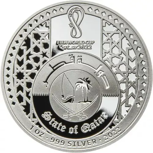 FIFA WORLD CUP Qatar2022 دولة قطر STATE OF QATAR 1 OZ · 999 SILVER · 2022 |