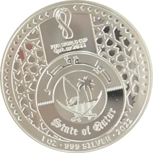 FIFA WORLD CUP Qatar2022 دولة قطر STATE OF QATAR 1 OZ · 999 SILVER · 2022 |