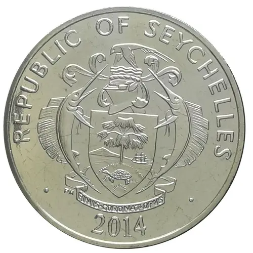 Obverse lettering REPUBLIC OF SEYCHELLES FINIS CORONAT OPVS PM 2014
