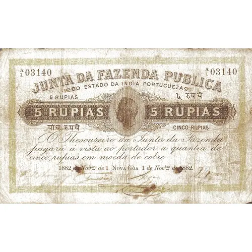 | 表面の銘文 | Junta da Fazenda Publica 5 RUPIAS |