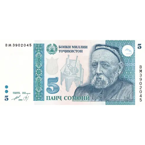 | Obverse lettering | БОНКИ МИЛЛИИ ТОҶИКИСТОН 5 ПАНҶ СОМОНӢ (Translation: National Bank of Tajikistan, Five Somonī) |