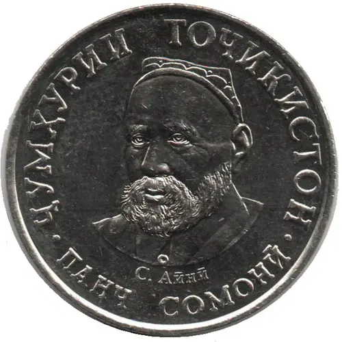 Ön yüz lejandı • ҶУМҲУРИИ ТОҶИКИСТОН • С. Айнӣ ПАНҶ СОМОНӢ