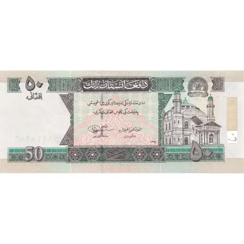 At Right - Shah-do-Shamshira Mosque (the Mosque of the King of Two Swords) in Kabul, (Pashto: شاه دوشمشېره جومات), is a yellow two-story mosque in Kabul, Afghanistan (District 2) on Andarabi Road, just off the Kabul River and the Shah-Do Shamshira bridge in the center of the city. It was built during the reign of Amanullah Khan (1919-1929). It was modelled after the Ortaköy Mosque in Istanbul. The design of this mosque is quite unusual for Islamic religious architecture. Its Italian decorative stucco creates an interesting effect that some describe as ‘Afghan Baroque’. Seal of The Afghanistan Bank above. |