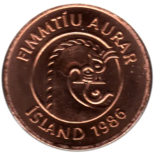 | Obverse lettering | FIMMTÍU AURAR ÍSLAND 1986 (Translation: Fifty Aurar, Iceland) |