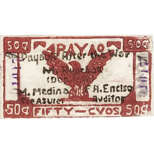| Opschrift voorzijde | APAYAO Payable After the War M. Ayochok (Dep. Gov) M. Medina F. A. Enciso Treasurer Auditor PAYABLE AFTER THE WAR FIFTY - CVOS 50 ¢ |