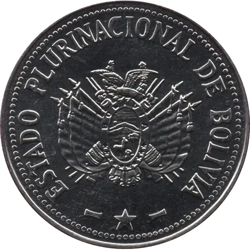 | Leyenda del anverso | ESTADO PLURINACIONAL DE BOLIVIA (Translation: Plurinational State of Bolivia) |