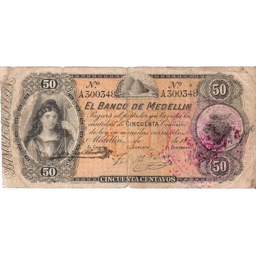 | 表面の銘文 | El Banco de Medellín Cincuenta Centavos Bradbury Wilkinson. London |