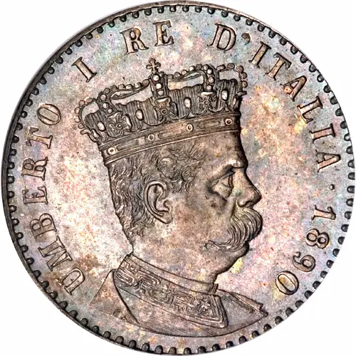| نوشتههای روی سکه | UMBERTO I RE D`ITALIA · 1890 (Translation: Umberto I King of Italy.) |
