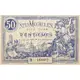 VILLE DE MALINES - BON POUR 50 CENTIMES (Translation: STAD MECHELEN - GOOD FOR 50 CENTS) |