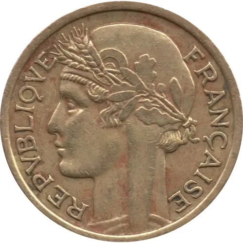توضیحات روی سکه Marianne`s head left wearing a phrygian cap decorated with a composite wreath made of olive tree leaves, oak and wheat.
