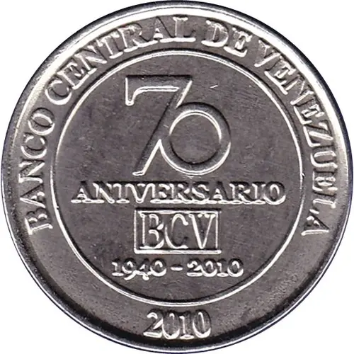 | Légende de l’avers | • BANCO CENTRAL DE VENEZUELA • 70 ANIVERSARIO BCV 1940-2010 2010 (Translation: Venezuela Central Bank 70th Anniversary Banco Central de Venezuela 1940-2010 2010) |