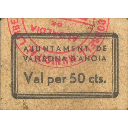 (Translation: City Council of Vallbona d`Anoia Valid for 50 Centimos)