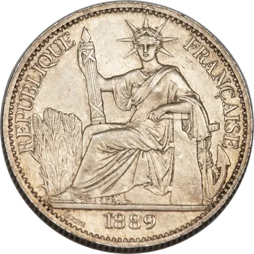 Obverse lettering REPUBLIQUE FRANÇAISE 1885 BARRE