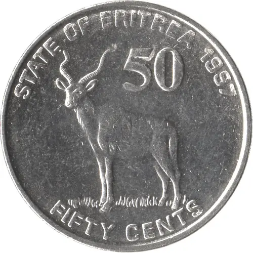 | Legenda awersu | STATE OF ERITREA 1997 50 FIFTY CENTS |