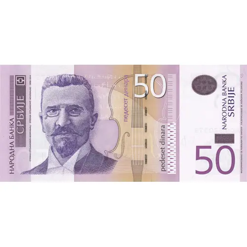 НАРОДНА БАНКА СРБИЈЕ педесет динара pedeset dinara 50 СТЕВАН СТОЈАНОВИЋ МОКРАЊАЦ STEVAN STOJANOVIĆ MOKRANJAC (1856-1914) NARODNA BANKA SRBIJE ФАЛСИФИКОВАЊЕ СЕ КАЖЊАВА ПО ЗАКОНУ FALSIFIKOVANJE SE KAŽNJAVA PO ZAKONU |