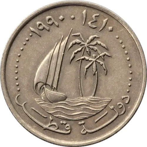 | Ön yüz lejandı | ١٤١٠ · ١٩٩٠ دولَة قطَر (Translation: 1990 · 1410 State of Qatar) |