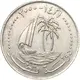 | Descrizione del dritto | Dates on top. Old emblem of Qatar consisting of a sailing ship (dhow) sailing on waves beside an island with two palm trees. |