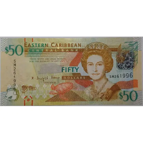 EASTERN CARIBBEAN CENTRAL BANK THESE NOTES ARE LEGAL TENDER FOR THE PAYMENT OF ANY AMOUNT FIFTY DOLLARS |