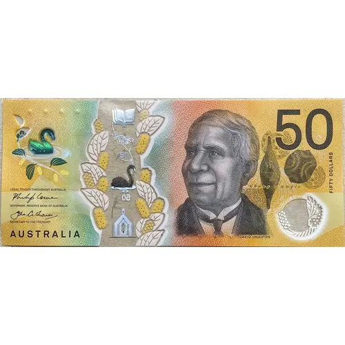 LEGAL TENDER THROUGHOUT AUSTRALIA GOVERNOR, RESERVE BANK OF AUSTRALIA SECRETARY TO THE TREASURY AUSTRALIA 50 Nhung e umpie DAVID UNAIPON FIFTY DOLLARS |