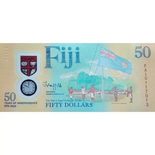 The banknote celebrates Fiji’s past capturing the historic first raising of the Fijian flag at Albeit Park, Suva on 10 October 1970 depicting the birth of Fiji as an independent nation |