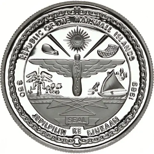 | Legenda awersu | REPUBLIC OF THE MARSHALL ISLANDS $50 1989 JEPILPILIN KE EJUKAAN |