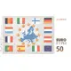 In the center, a map of Europe surrounded by the 12 stars representing Europe. On the edge, the European flag and the 11 national flags (still without Greece) of the eurozone countries that had met the requirements for participation in the euro at that time. |