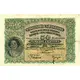 Obverse description Black and green print; yellow and green underprint. Bust of Jeanne Charles Cerani Cišic in oval medallion to the left.