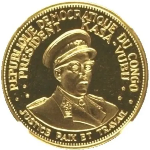 | 正面铭文 | ☆ REPUBLIQUE DEMOCRATIQUE DU CONGO ☆ ☆☆ PRESIDENT KASA-VUBU ☆☆ JUSTICE PAIX ET TRAVAIL (Translation: DEMOCRATIC REPUBLIC OF CONGO JUSTICE PEACE AND WORK) |
