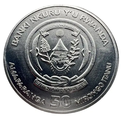 | Obverse lettering | BANKI NKURU Y`U RWANDA REPUBLIKA Y`U RWANDA UBUMWI - UMURIMO - GUKUNDA IGIHUGU AMAFARANGA 50 MIRONGO ITANU (Translation: Central Bank of Rwanda Republic of Rwanda Unity work patriotism Fifty francs) |