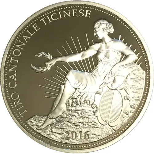 | Descrizione del dritto | Seated woman holding wreath. Hat over arms of Ticino at bottom right. |