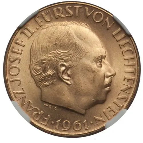 | Obverse lettering | FRANZ JOSEF II. FÜRST VON LIECHTENSTEIN WELZ ·1961· (Translation: Franz Josef II. Prince of Liechtenstein) |